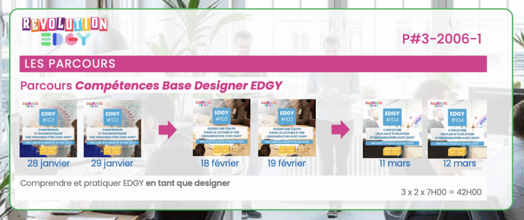 C’est pourquoi In Principo Academy propose Révolution EDGY, une suite de formations pour faire d’EDGY la capacité d’évolution collective première de votre organisation.